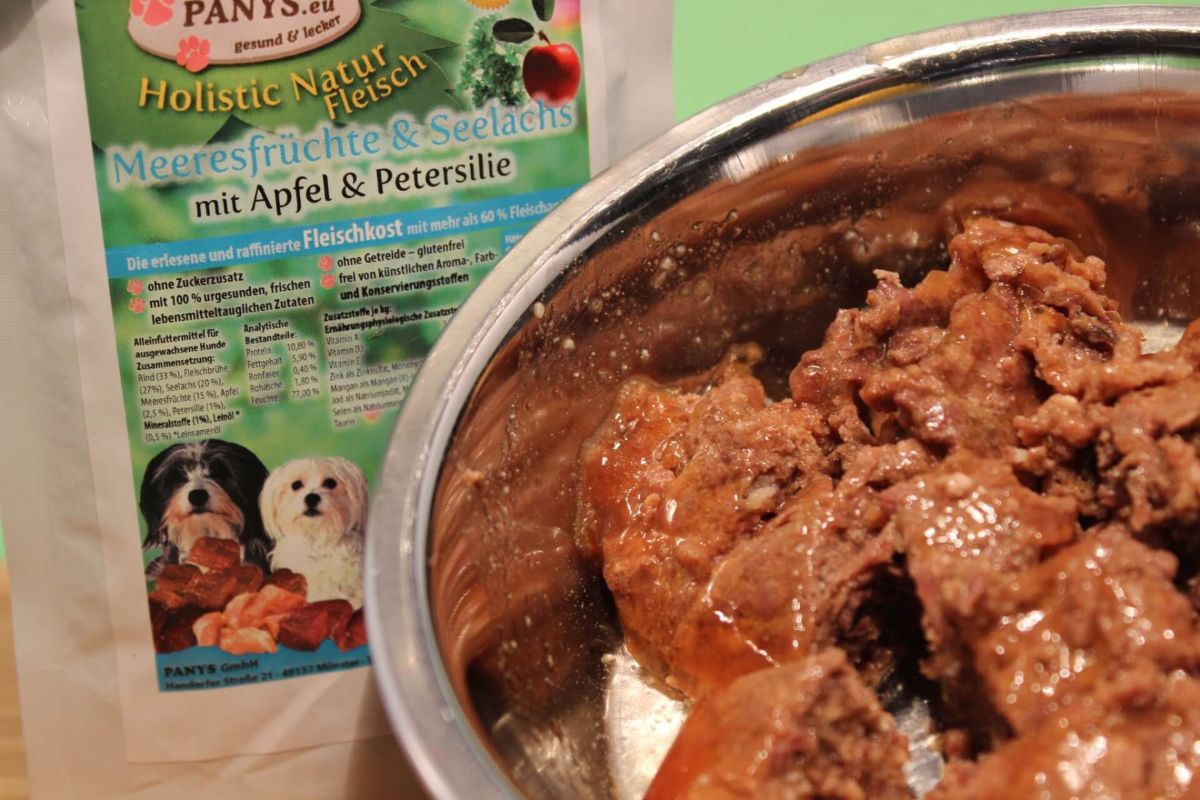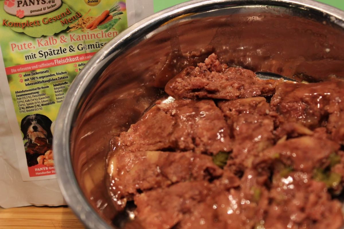 wird im schonenden Garverfahren hergestellt. Mit einem Fleischanteil von über 60,0 % und einer Fleischbrühe, die ausschließlich aus den jeweiligen Fleischsorten der Inhaltsangabe besteht, bekommt der Hund eine artgerechte Mischung. Mit insgesamt 12 reinen Fleisch und  glutenfreien Sorten bieten wir auch Magen- Darmsensiblen Hunden eine ideale Mahlzeit. PANYS Pouchbeutel sind sehr beliebt weil man sie auch für unterwegs bequem mitnehmen kann, einfach aufreißen und rein ins Näpfchen. Sollte mal kein Näpfchen zur Hand sein, frisst so mancher Hund auch gleich aus dem Beutel. Einfach Beutel zusammen rollen und ab in den Müll, so hat man weniger Müll und vor Allem, keinen lästigen Dosenmüll. Wenn man dann noch den Beutel mit Wasser ausspült, schmeckt dem Hund das Trinkwasser nochmal so gut.